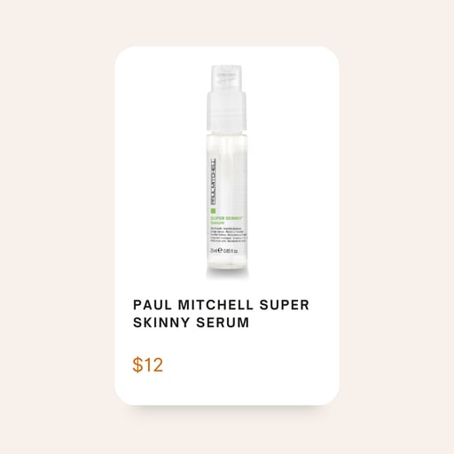 Super Skinny Serum tames frizz, conditions, and adds shine, leaving hair silky and weather-resistant. The lightweight formula uses silicones to smooth and seal strands while reducing drying time for faster, flawless results.