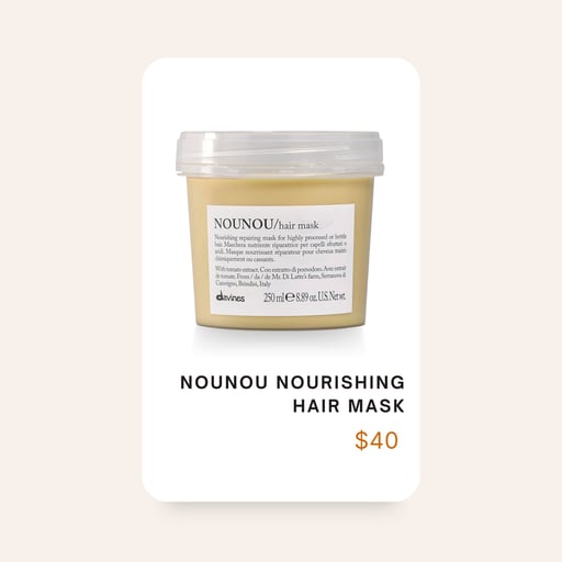 Hair masks are perfect for combating frizz with intense hydration. This one, enriched with vitamin E for elasticity and vitamin C for collagen production, strengthens hair and prevents breakage. The NOUNOU mask, with Fiaschetto tomato extract, deeply nourishes, softens, and repairs highly-processed hair and scalp.